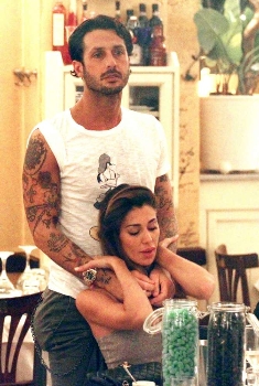 Lui si struscia al collo di lei, lei lo accarezza materna, poi, con una sigaretta in mano (ma il fumo non è vietato nei luoghi pubblici?) Belen sembra rimproverarlo per qualcosa. La discussione si fa accesa e Belen ha il piglio di chi è irritata. Che il suo scapestrato e irrequieto fidanzato ne abbia combinata un'altra delle sue?